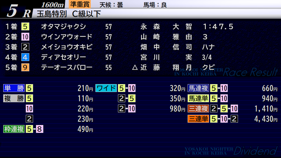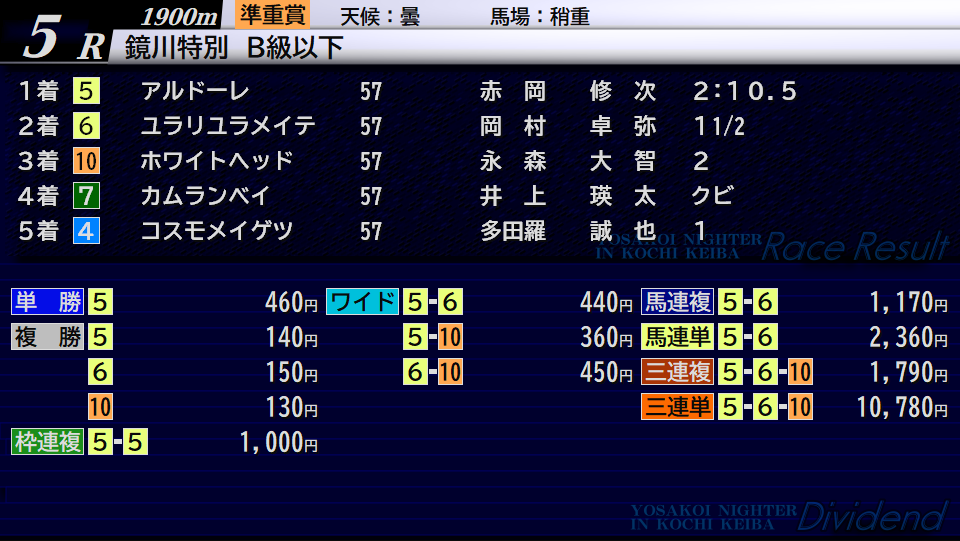 (牡5 宮川浩一厩舎/[J]大久保友雅騎手)