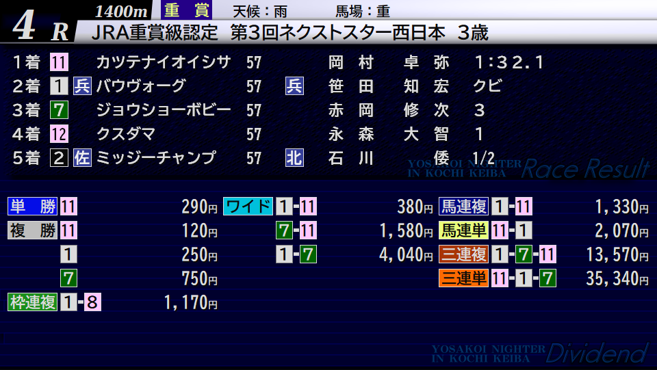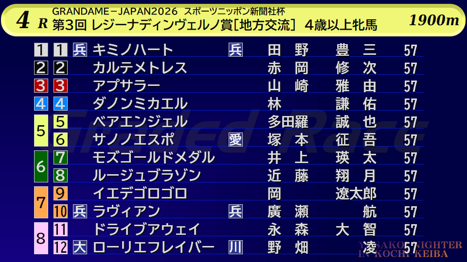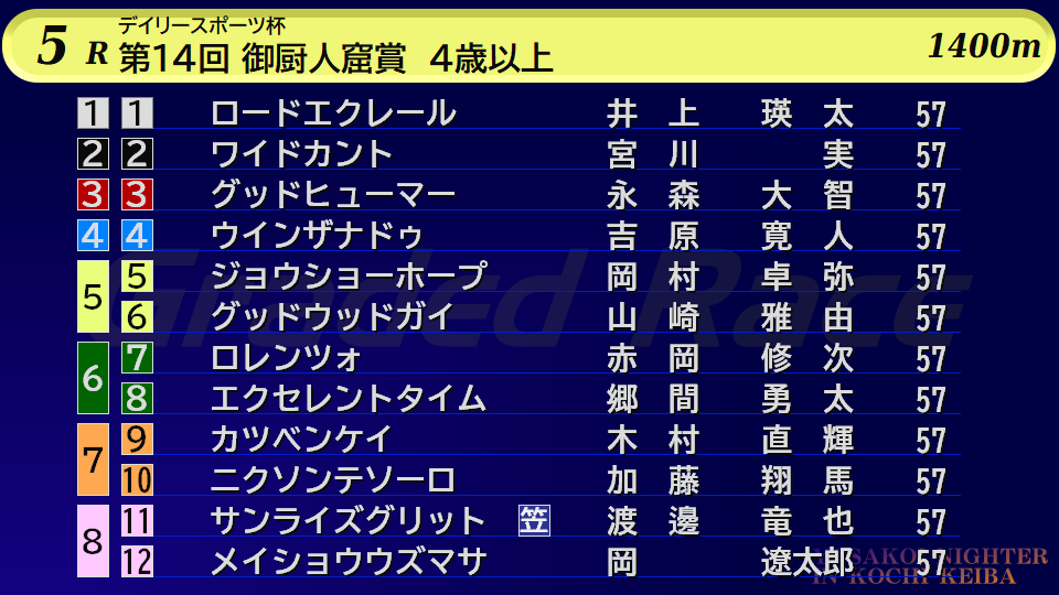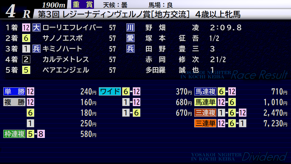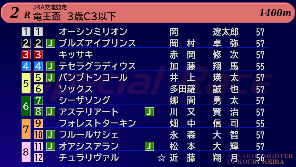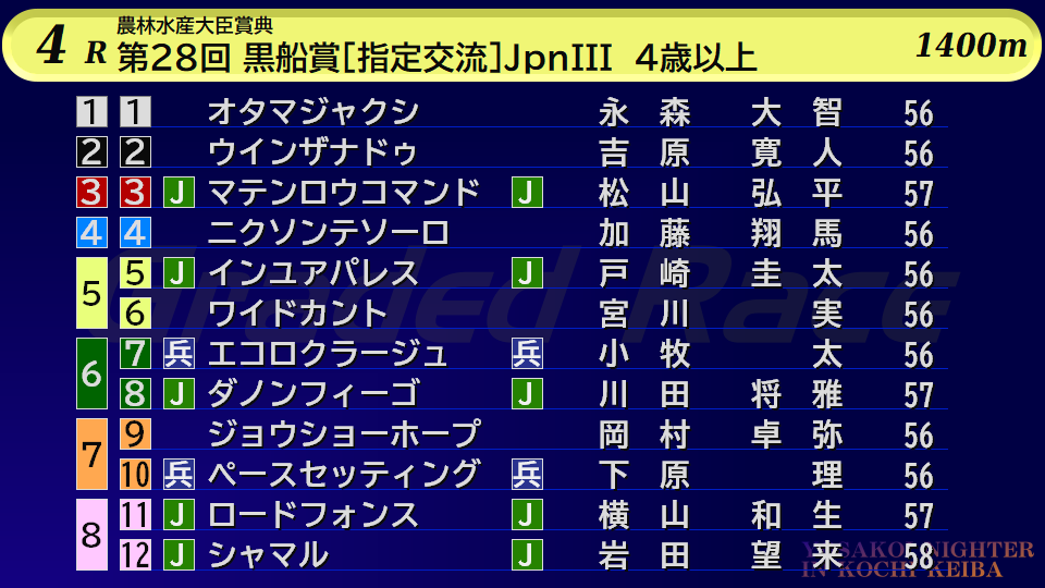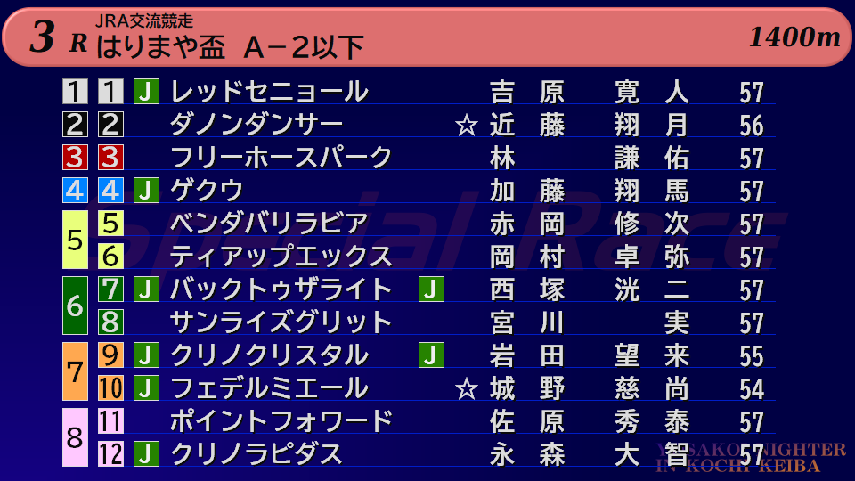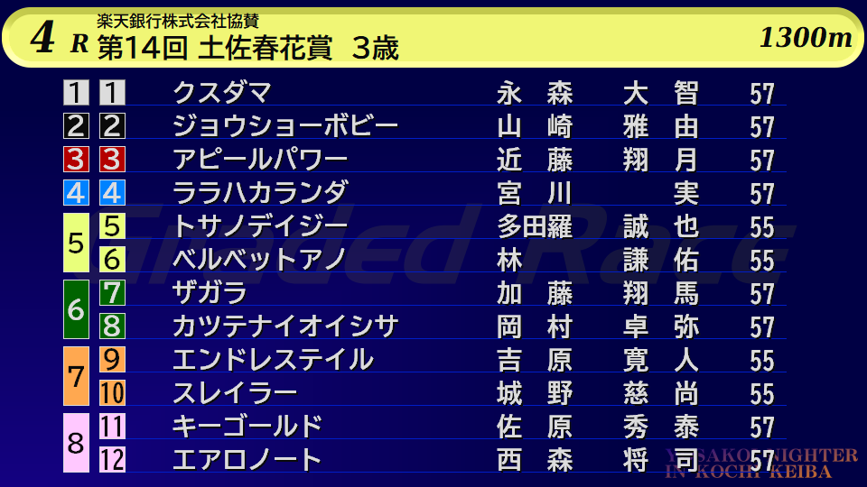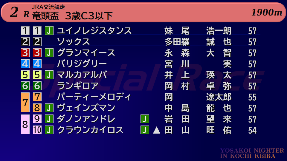 (JRA4歳以上2勝クラス以下/高知4歳以上A級2組以下 定量)