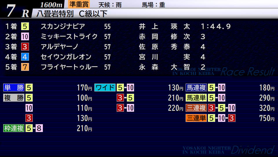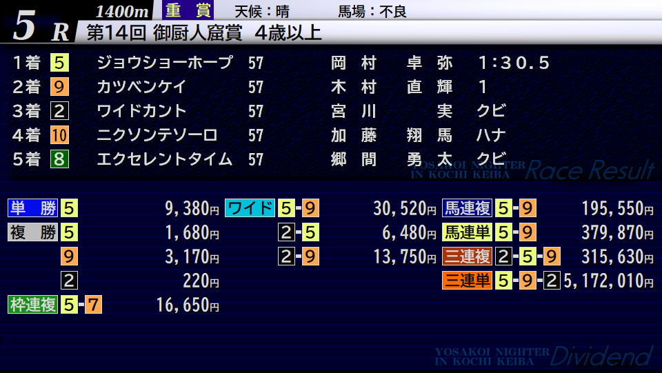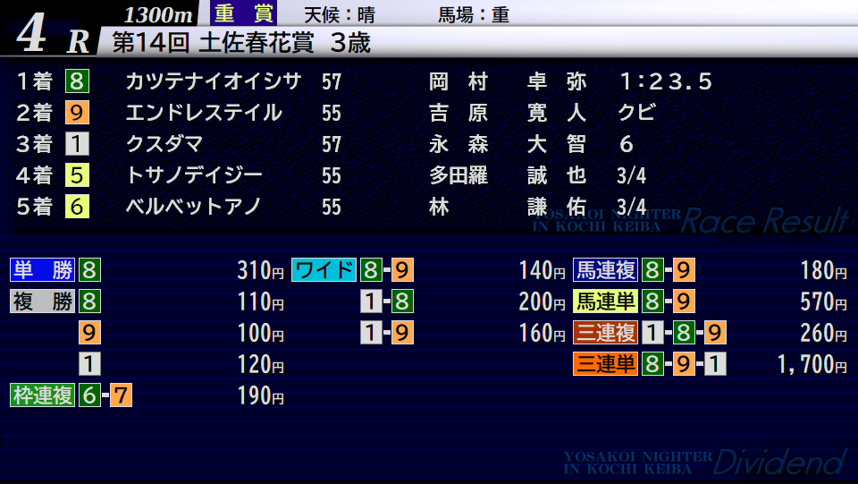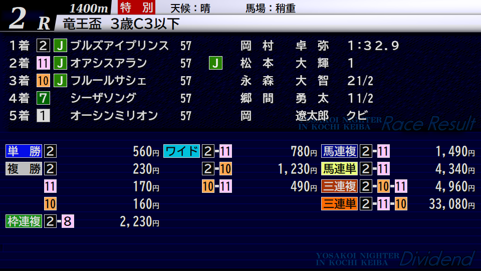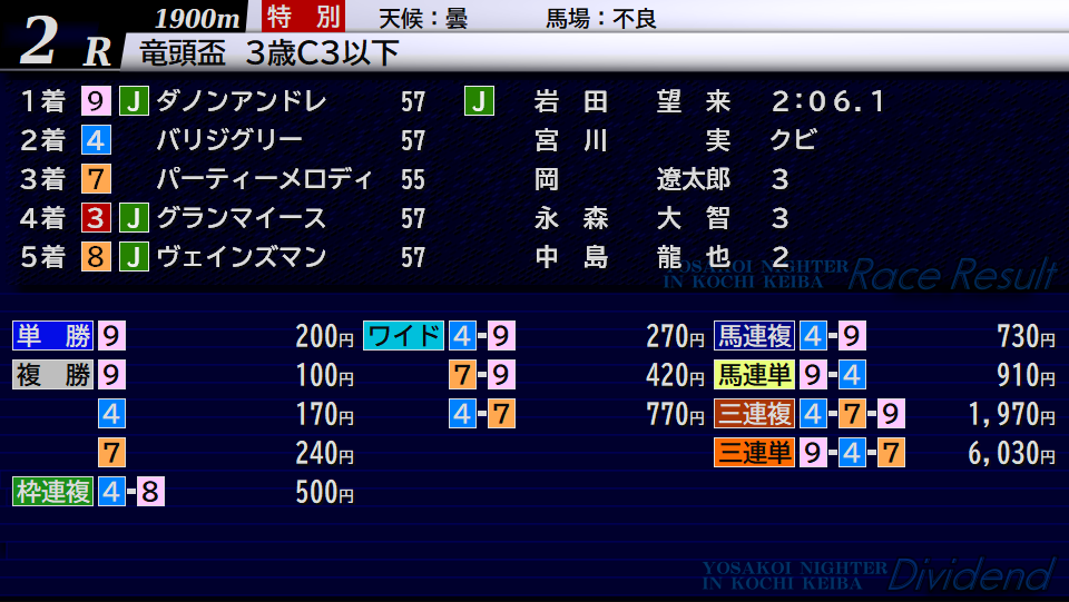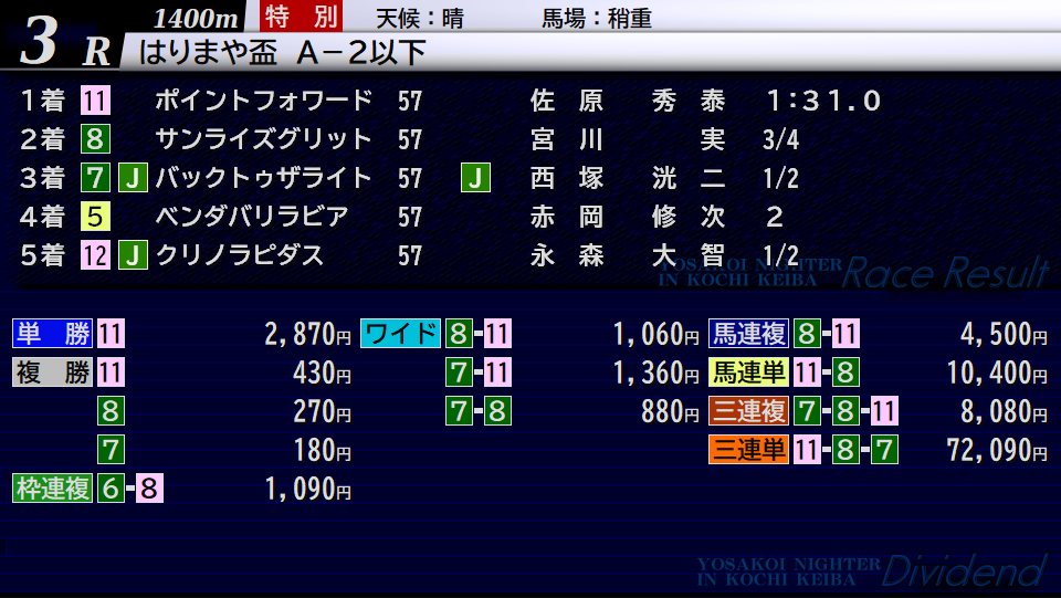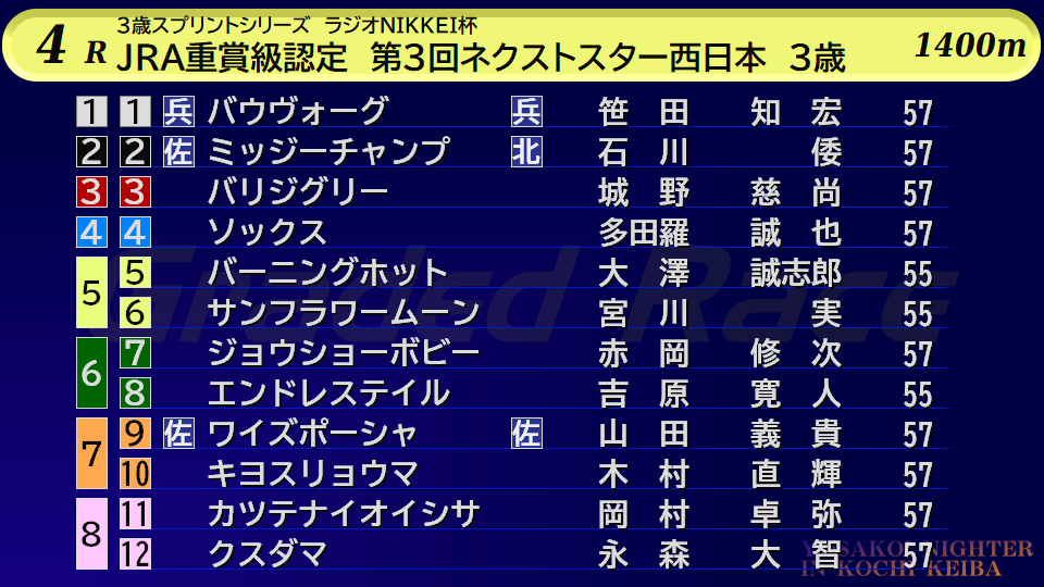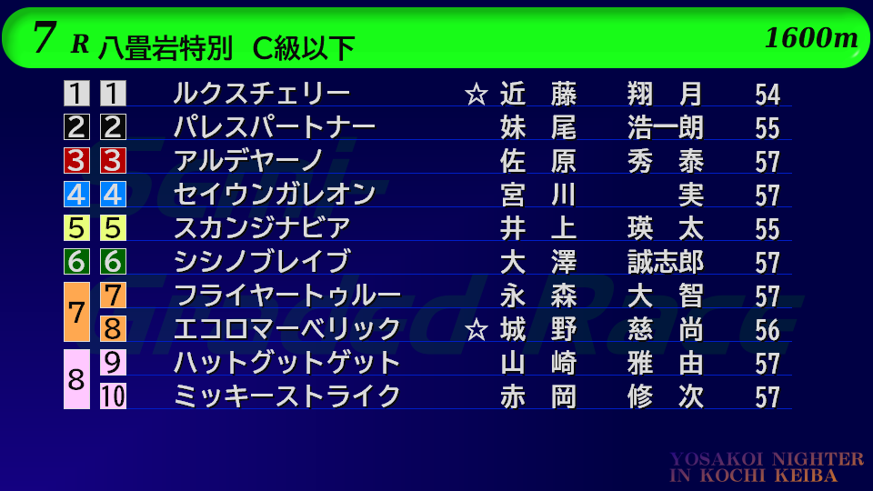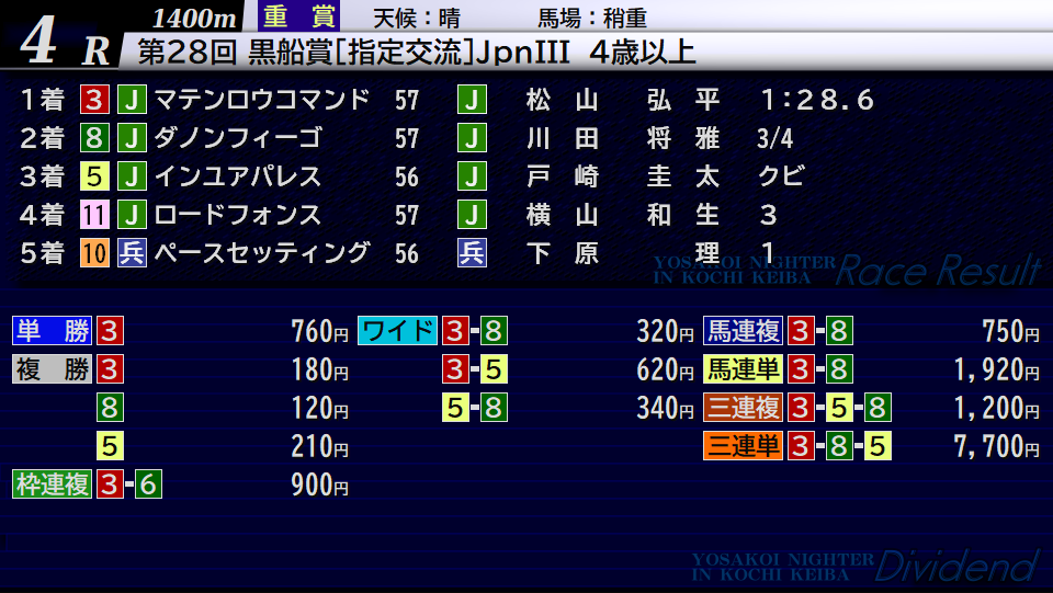 (JRA4歳以上2勝クラス以下/高知4歳以上A級2組以下 定量)